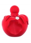 Presentación icónica en botella con forma de manzana en rojo mate velvety, símbolo de pasión y estilo.