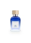 El frasco de Lima Tonka es transparente, de líneas rectas y esquinas curvas y está coronado por un tape de madera, que le da un toque puro y masculino.
