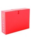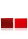 El frasco de forma rectangular de plástico rojo.
